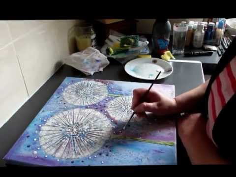 At the beginning of the video you will see 3 round circles. These are created using decoart glass liner paint.You can use any kind of liner paint which gives a raised effect. Leave the circles to dry for approx. 20 mins. Using the end of a small paintbrush, start removing the paint. The rest is on the video.